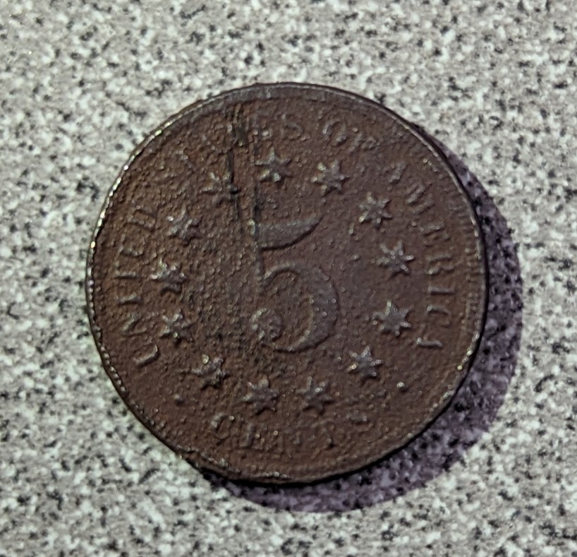 1872 Shield Nickle found by John Q. with an XP Deus at a 6-inch depth.