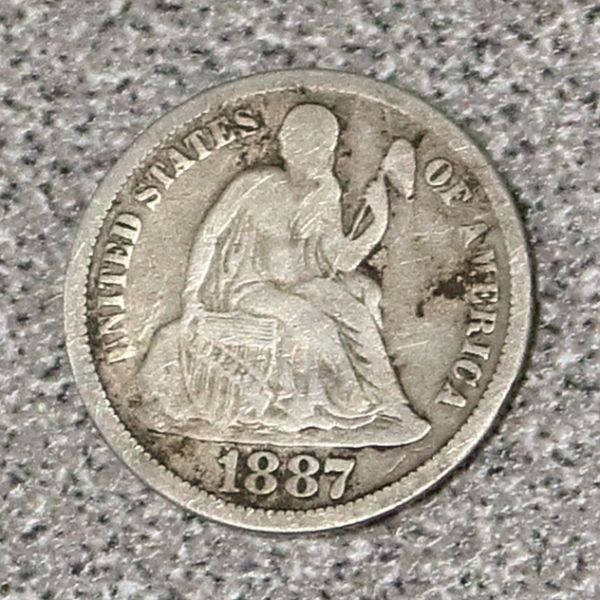 David E. found a Seated Liberty Dime from 1887 at an 8-inch depth with his XP Deus 2.
