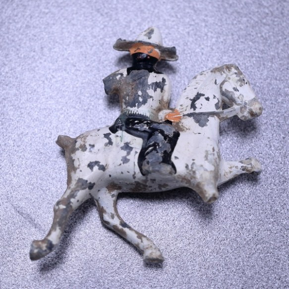 John W. used his Equinox 800 in the recovery of a vintage (1930s – 1940s) Barclay-Manoil diecast lead cowboy on a horse from a depth of three inches.