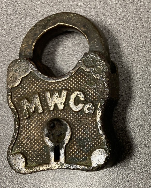 Emilian T. recovered a Mallory Wheeler & Co. Padlock from a 6- to 7-inch depth using his Minelab Equinox 800.
