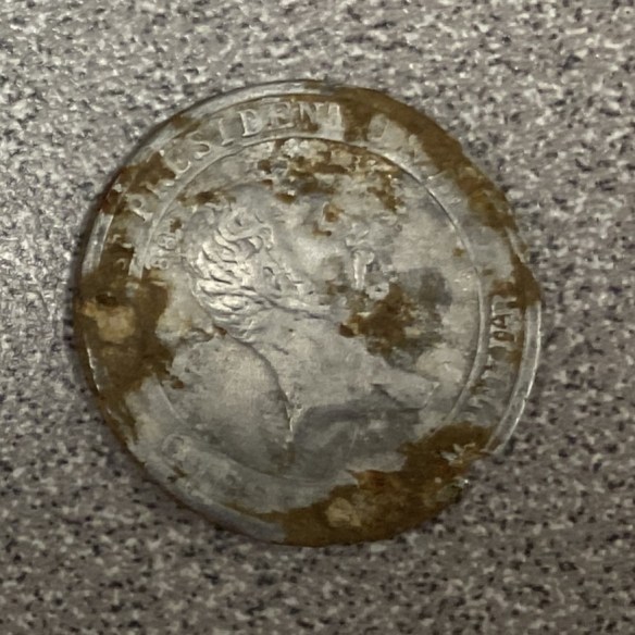 John W. found a Cracker Jack Mystery Club Token from the 1930s, featuring the 21st President (Chester A. Arthur), at a 4-inch depth with his Equinox 800.