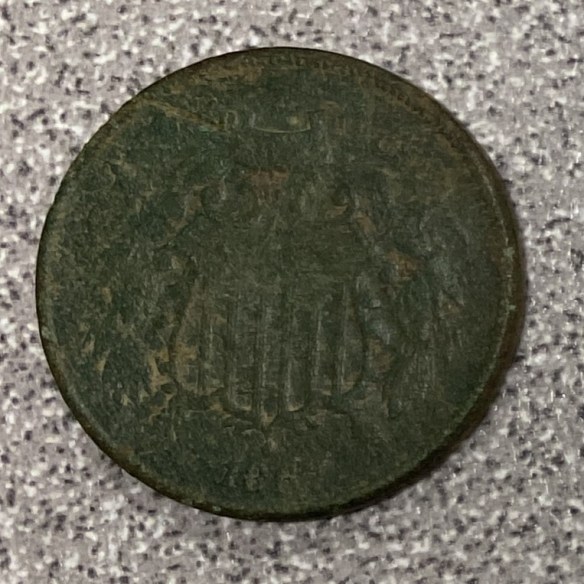 John Q. recovered an 1867 2-cent piece from a depth of 7 inches using his XP Deus.