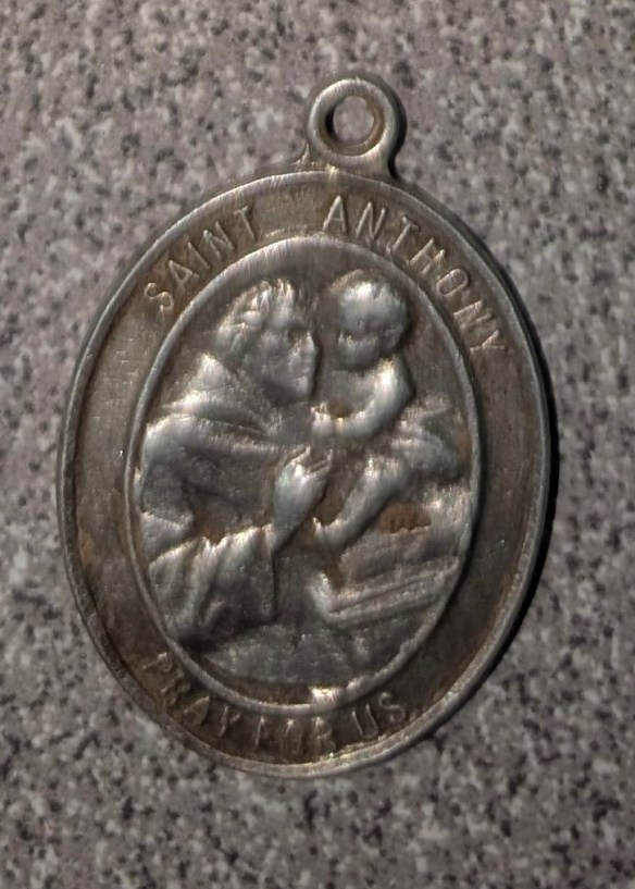 Rick C. found a silver Saint Anthony of Padua Medal at a depth of 2 to 3 inches with his Equinox 600.